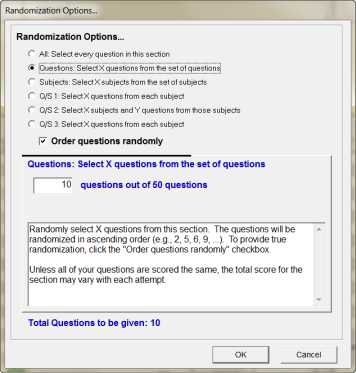 Whether creating tests, exams, assessments, papers, quizzes or surveys, Test Generator enables test authors to apply a range of randomization options to a test.